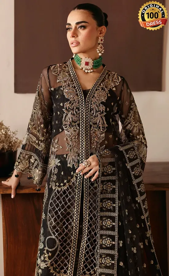 • Embroidered organza daman lace with sequence (Front and back )