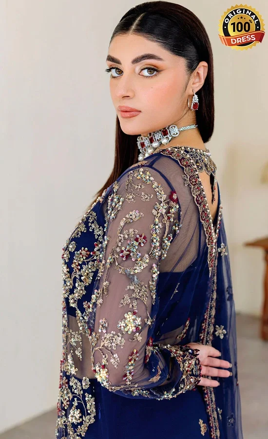 - Net Embroidered & Hand Embellished Sleeves