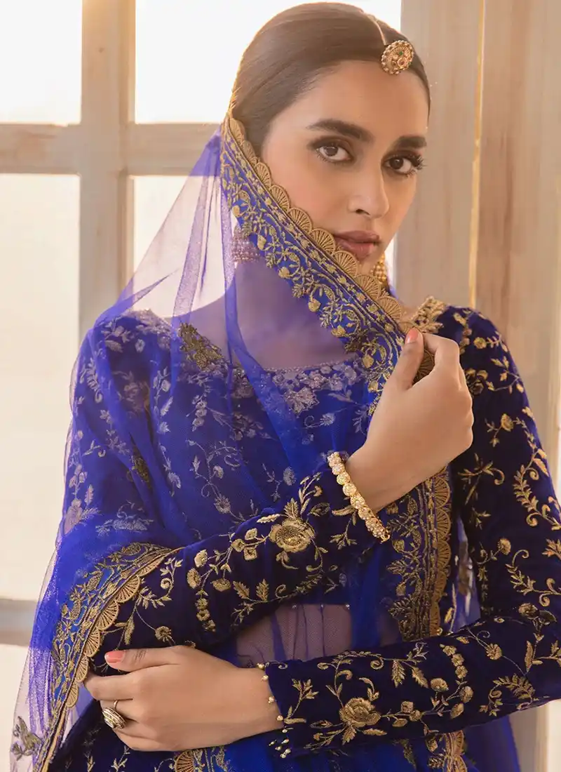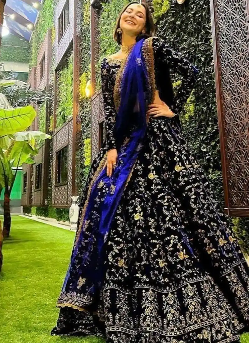 Product Name Navy Blue Velvet Bridal Lehenga Choli (Inspired by Faiza Saqlain)